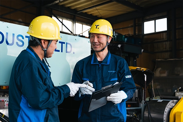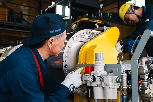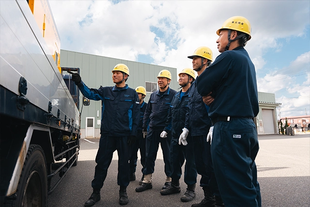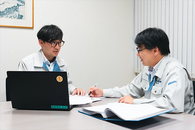 東北興産では、先輩と一緒に現場を回りながら、実践で学べる体制を整えています。