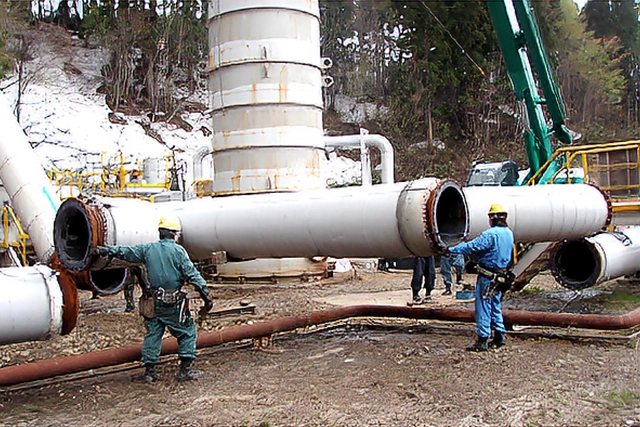 地熱発電所蒸気供給設備、配管、バルブ類のスケール洗浄