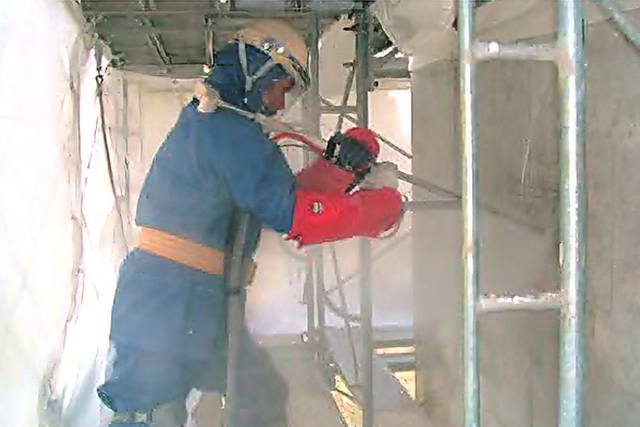 エコマスター2000による火気厳禁場所での配管切断、設備解体及びコンクリートのはつり