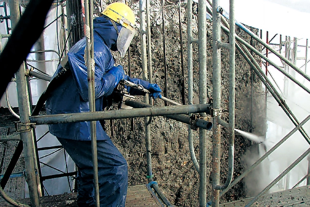 製錬工場、製紙工場、化学工場などの配管、熱交換器、各種タンク、オートクレーブ機械設備の洗浄