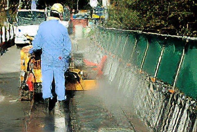 超高圧の水、ウォータージェットを駆使し、コンクリートを切る・削る・洗う。それが私たち東北興産の技術です。